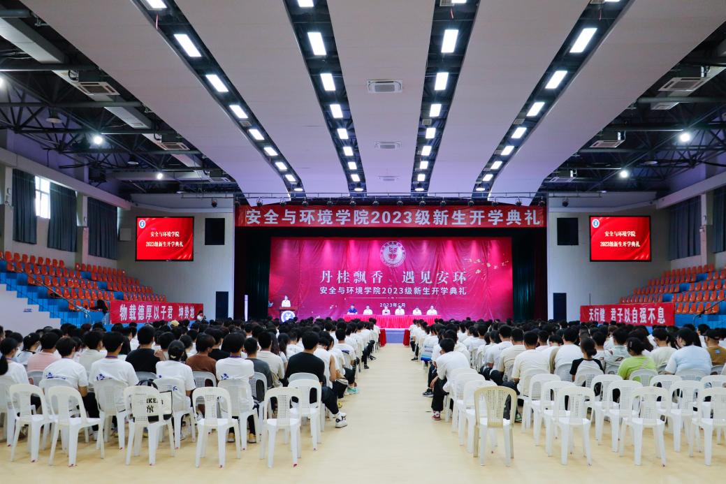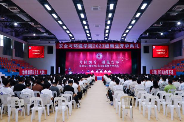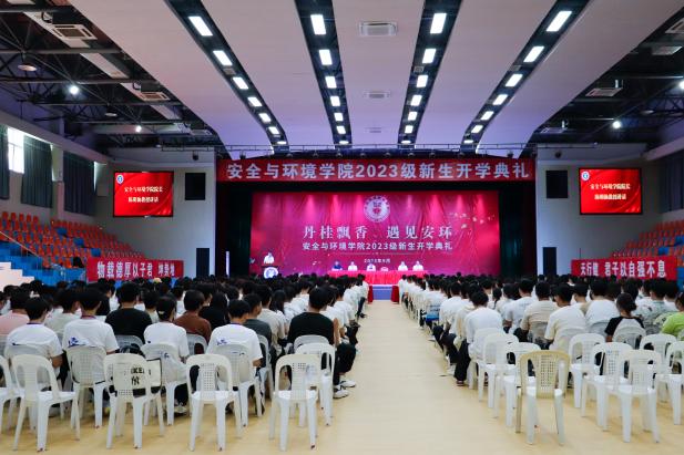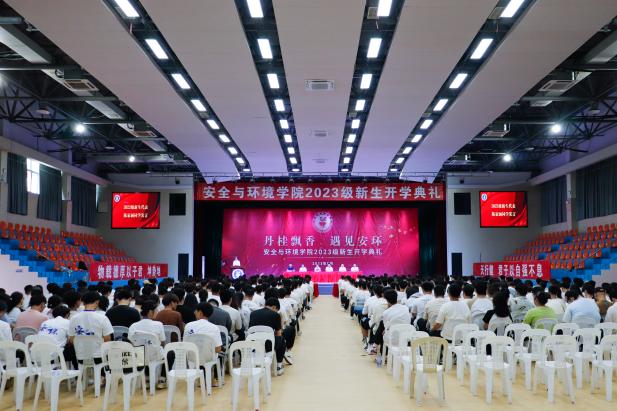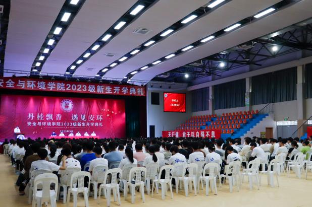 2023年9月26日上午,安全与环境学院2023级新生开学典礼在福道园文体中心隆重举行。安全与环境学院党总支书记郑雪琴、院长陈明仙、副院长陈榕、副院长范自盛、副处级组织员陈火城及全体教职工出席本次典礼。本次开学典礼由学院团委组织委员陈婧主持。