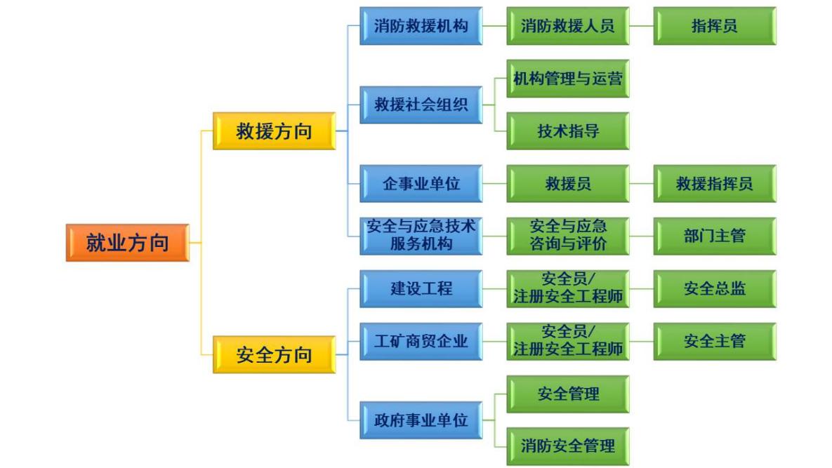 学生毕业后,可以在消防应急救援机构、政府及企事业单位应急救援部门、社会组织从事应急管理工作,还可以在工程建设、交通运输、化工、电力、制造等行业从事安全生产管理与应急等工作,或在安全技术服务等单位从事安全与应急技术咨询和评价、消防设施监控与操作等工作。