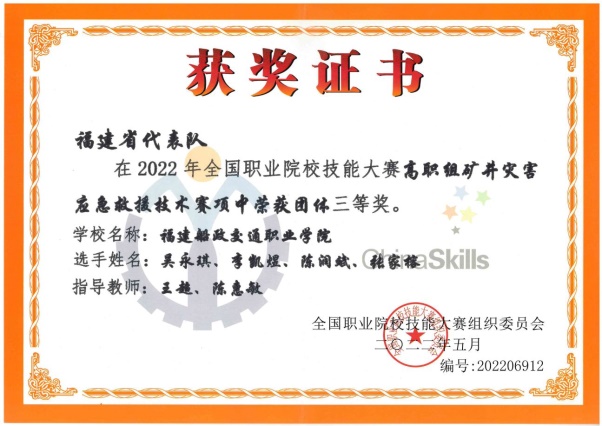 应急救援技术专业学生参加国家和省级救援类竞赛获奖证书