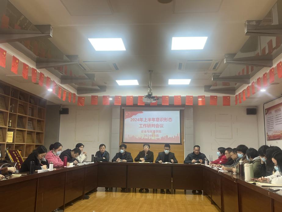 2024年3月13日,安全与环境学院召开2024年上半年意识形态专题研判会。会议由安全与环境学院党总支书记郑雪琴主持,全体教职工参加了会议。