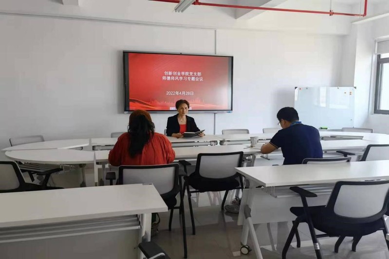为深入学习贯彻落实党的十九大和习近平总书记系列重要讲话,进一步强化师德教育、践行师德规范、弘扬高尚师德,增强职业教育教师教书育人的责任感和使命感,创新创业学院党支部于2022年4月28日下午,开展了“强师德 铸师魂 争当‘四有’好教师”主题党日活动。
