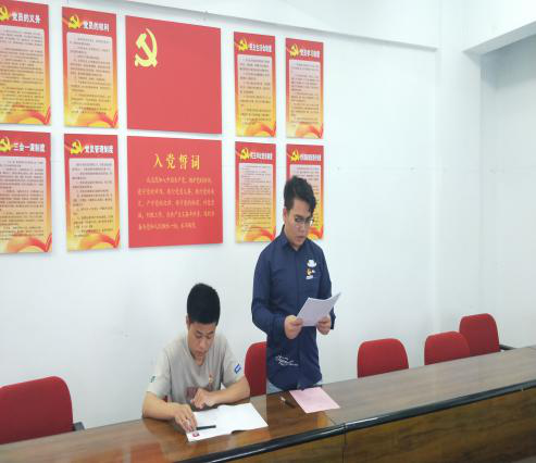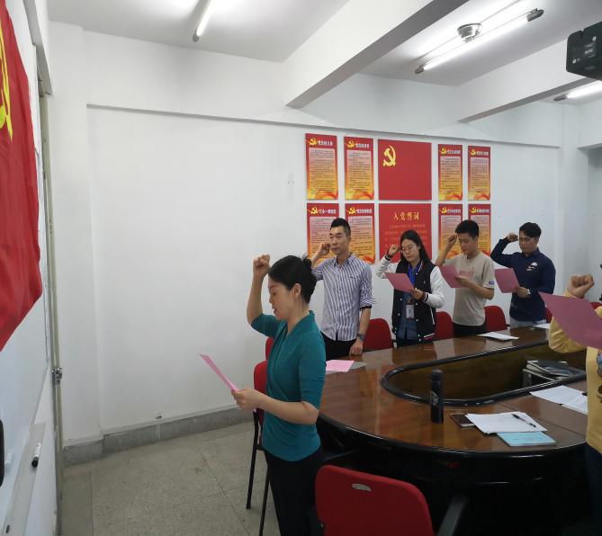 大会最后,在蔡书记的带领下,在场支部党员与两位预备党员面对党旗进行光荣的宣誓仪式,希望在场的支部党员同志们,能够不忘入党初心,让两名新加入的预备党员同志永远记住今天这个日子,永远记住现在这个时刻,永远记住对党发出的铮铮誓言,努力用实际行动为党徽增光,为党旗添彩,堂堂正正做人,为共产主义事业奋斗终身。