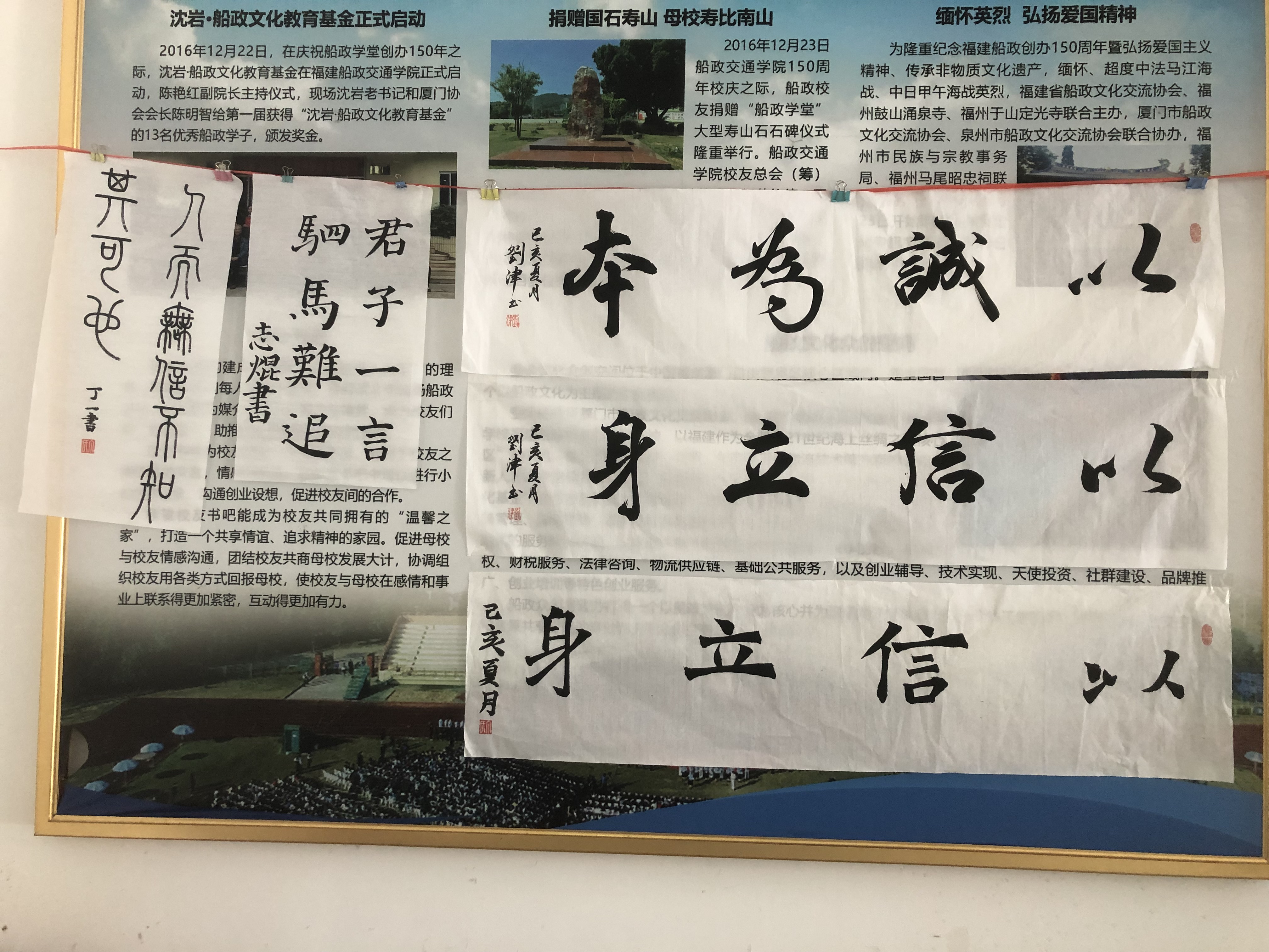 “以诚为本,以信立身”在这个讲究诚信的时代,我们应当弘扬中华传统美德,以诚为本。书法博大精深,凝聚着炎黄子孙的无穷智慧,是中华民族文化遗产中的瑰宝。为让大家意识到诚信的美好品德,用规范字的意识,传承传统文化,营造校园诚信建设氛围,航海技术系与轮机工程系于2019年5月30共同举办了“以诚为本 以信立身”诚信书法大赛。