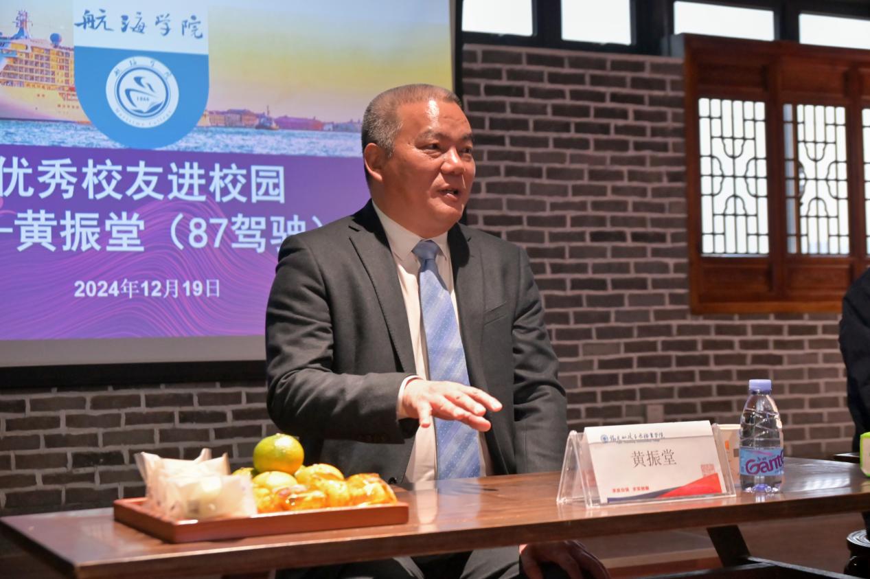 山海自有归期,风雨自会相逢。12月19日,我校航海学院迎来一场别开生面的校友进校园活动。活动邀请1987届杰出校友黄振堂分享他在船上的工作经历及见解,航海学院部分同学参加本次活动。