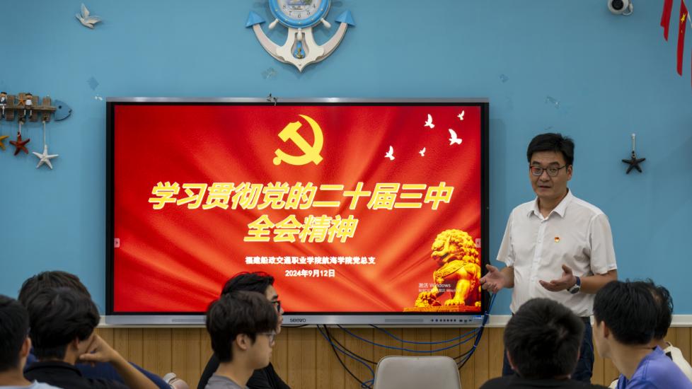 为贯彻落实二十届三中全会精神,2024年9月12日晚上19:00,福建省船政交通职业学校航海学院在校友之家五高(一期)实训室成功开展航海学院二十届三中全会宣讲活动。第二、三批入党积极分子共同参与。航海学院副院长李翼(主持工作)出席并作讲话。