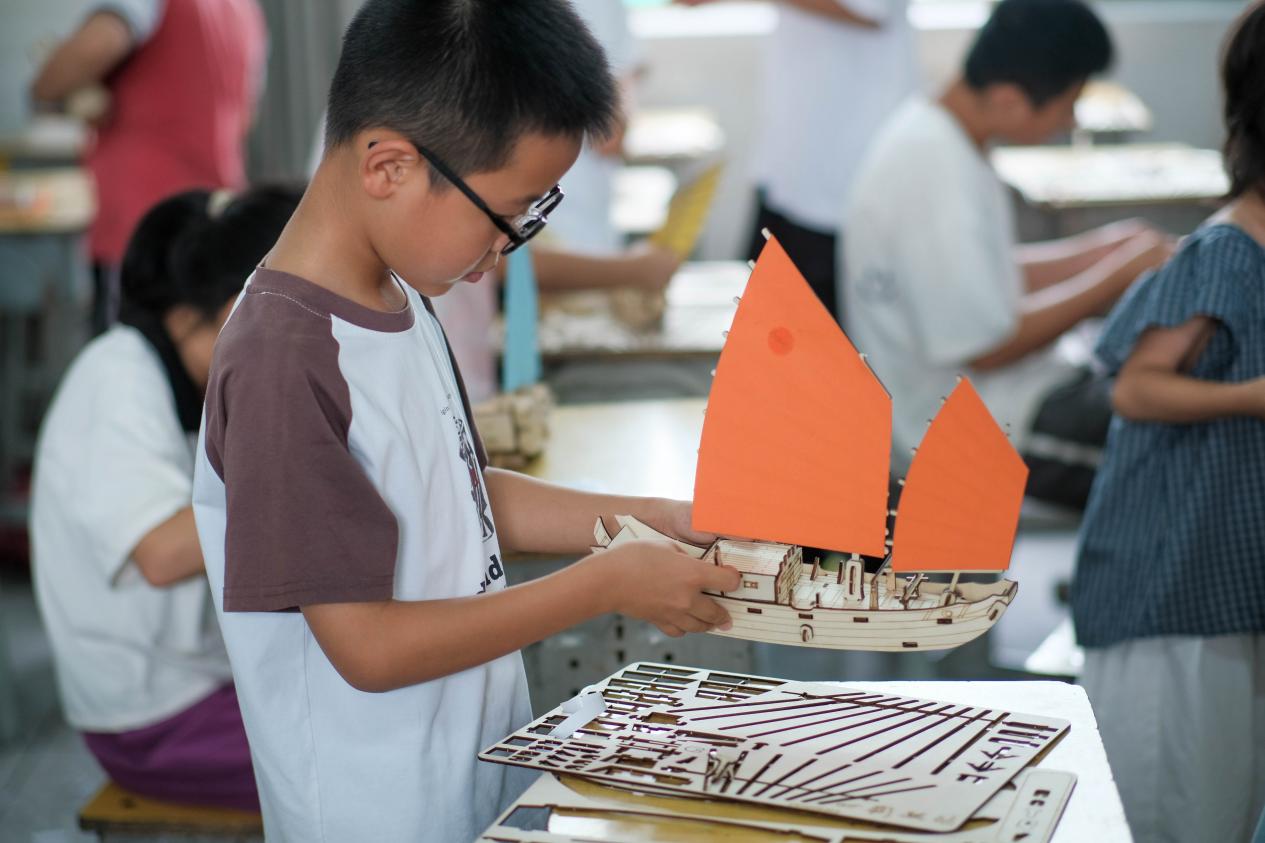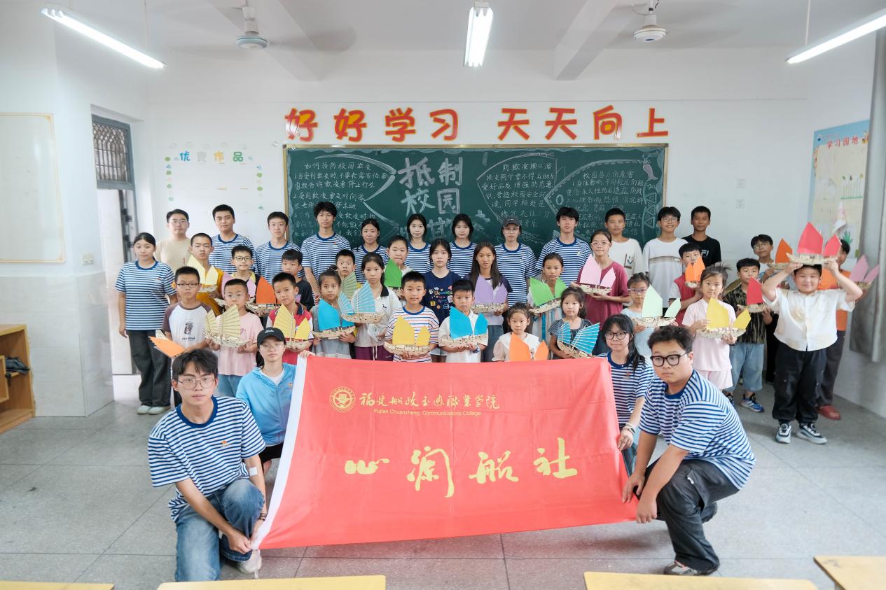 离别的时候,孩子们举着船模挥手道别,这场山海相连的科普课,或许正如那艘福船模型,载着船舶知识的种子,在三十颗童心里悄然启航。而实践队的队员们知道,当这些孩子未来望向远方时,或许会记得这个夏天,曾有一群航海学子,为他们打开过一扇通往海洋的窗。