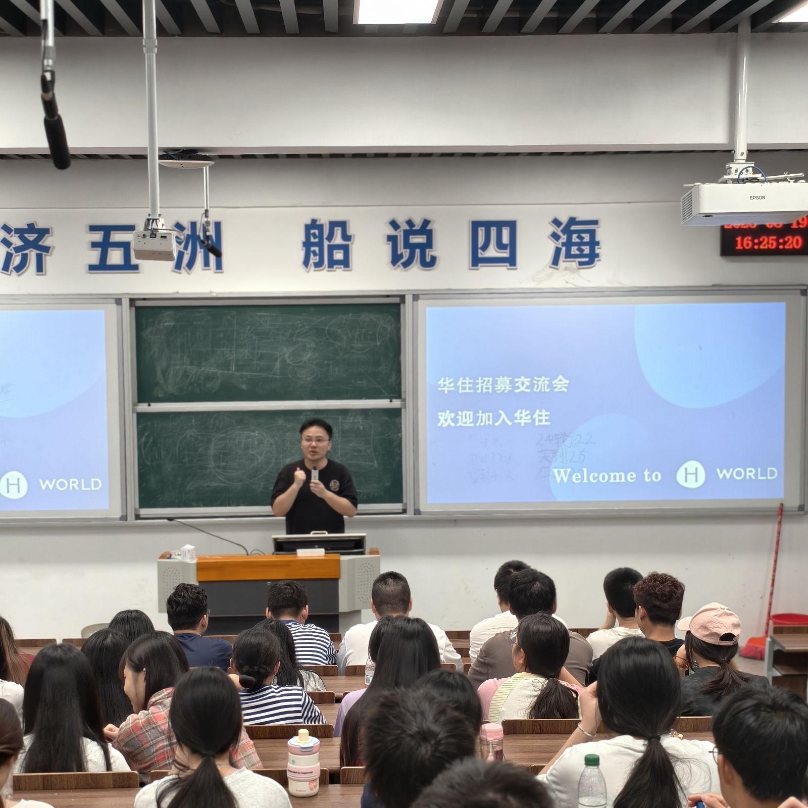 宣讲会上,华住酒店管理有限公司的李洋帆经理率先登台。华住作为全球领先的酒店集团,旗下品牌众多,覆盖多元市场。李经理详细介绍了华住的发展历程、企业文化及业务布局,分享了酒店行业在数字化浪潮下的创新变革与人才需求趋势。国际邮轮乘务管理专业与酒店行业在服务理念、客户管理等方面存在诸多共通之处,李经理鼓励同学们将专业技能灵活运用到酒店领域,强调华住为年轻人提供的丰富晋升路径与广阔发展平台,激发了同学们对酒店行业的浓厚兴趣。