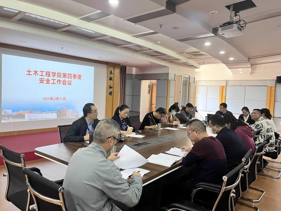 为推动校园安全工作高质量发展,按照年度安全工作计划安排,土木工程学院于2023年12月15日下午在创新楼1007会议室召开了第四季度安全工作会议。会议就第四季度安全工作进行总结并部署下一季度安全工作。土木工程学院领导班子成员、组织员、办公室人员、全体辅导员及全体实训中心成员参加了会议,会议由朱明栓副院长主持。