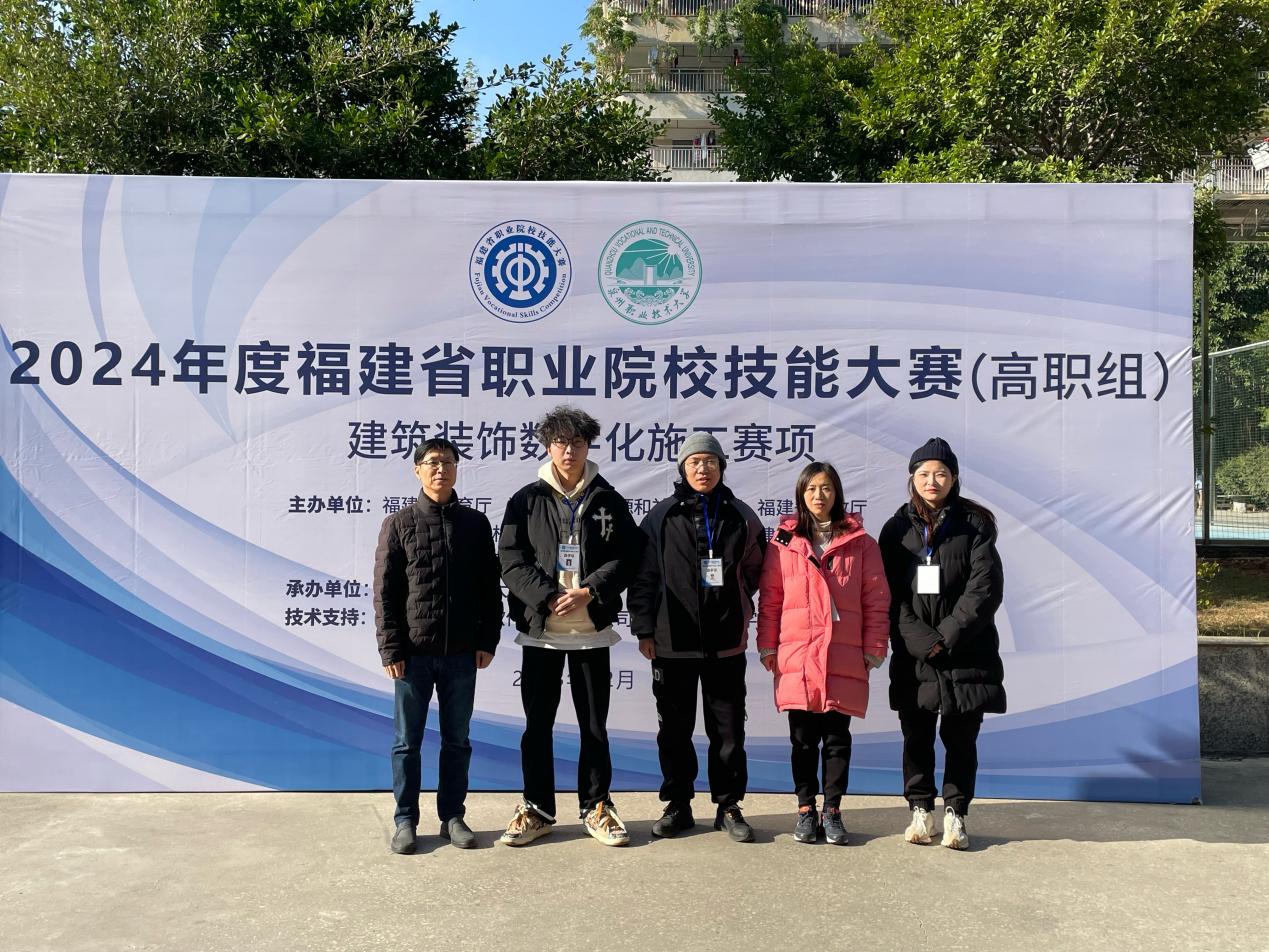 12月22日至24日, 2024年福建省职业院校技能大赛(高职组)建筑装饰数字化施工赛项在泉州职业技术大学举行。来自福建省职业院校的25支代表队,75名师生选手参赛同台竞技。我校参赛队伍由土木工程学院卢娜(教师)和叶浩锦(学生)、谢昊霖(学生)组成师生参赛团队。我院师生团队扎实奋战,荣获省赛二等奖。