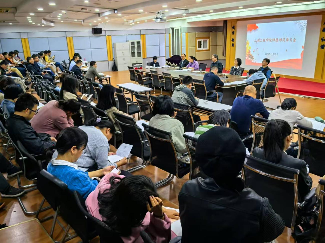 11月20日,土木工程学院在创新楼1007召开师德师风专题学习会。土木工程学院全体教职工参加本次会议,会议由党总支书记高杰同志主持。