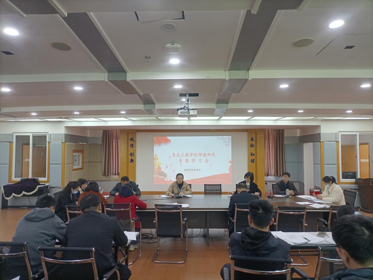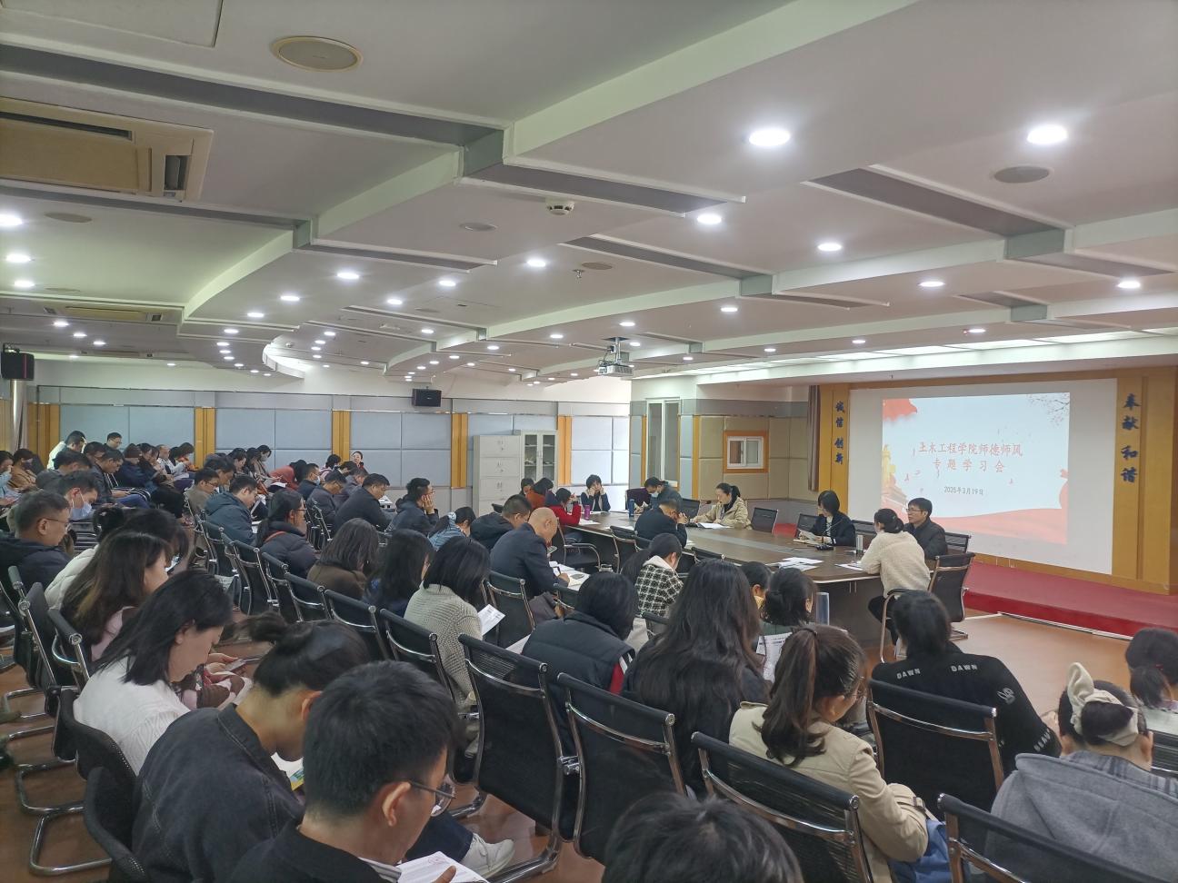 3月19日下午,土木工程学院在创新楼1007召开师德师风专题学习会。土木工程学院全体教职工参加本次会议,会议由党总支副书记任颖卿同志主持。