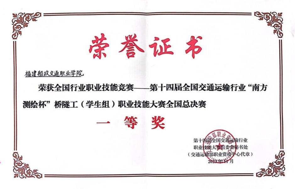 获全国交通运输行业桥隧工职业技能大赛一等奖