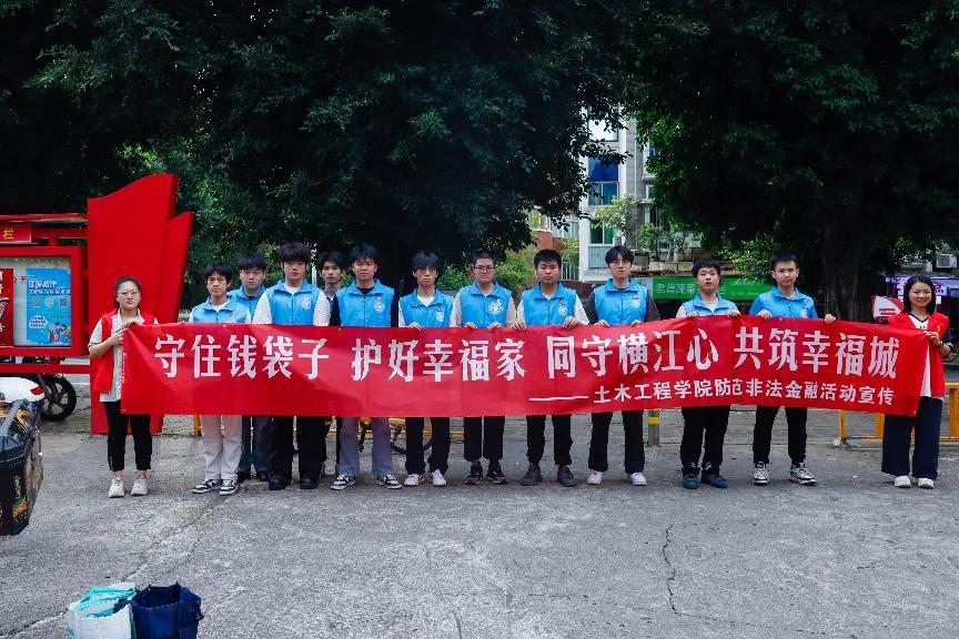 为提高社区居民的防范金融风险意识,营造良好的金融环境,助力幸福家园建设。2025年6月18日,土木工程学院前往仓山区金山街道横江渡社区开展以“守住钱袋子 护好幸福家 同守横江心 共筑幸福城”为主题的金融安全宣传活动。