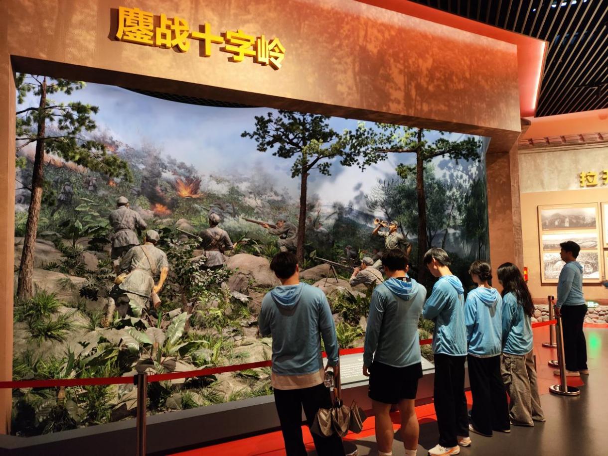 沉浸式学习:成员们驻足于中央红军首次缴获的“马克思号”飞机模型下,观看着1932年漳州战役中红军智取敌机的故事;在《鏖战十字岭》雕塑前,感受红军天宝山决战的英勇场景。