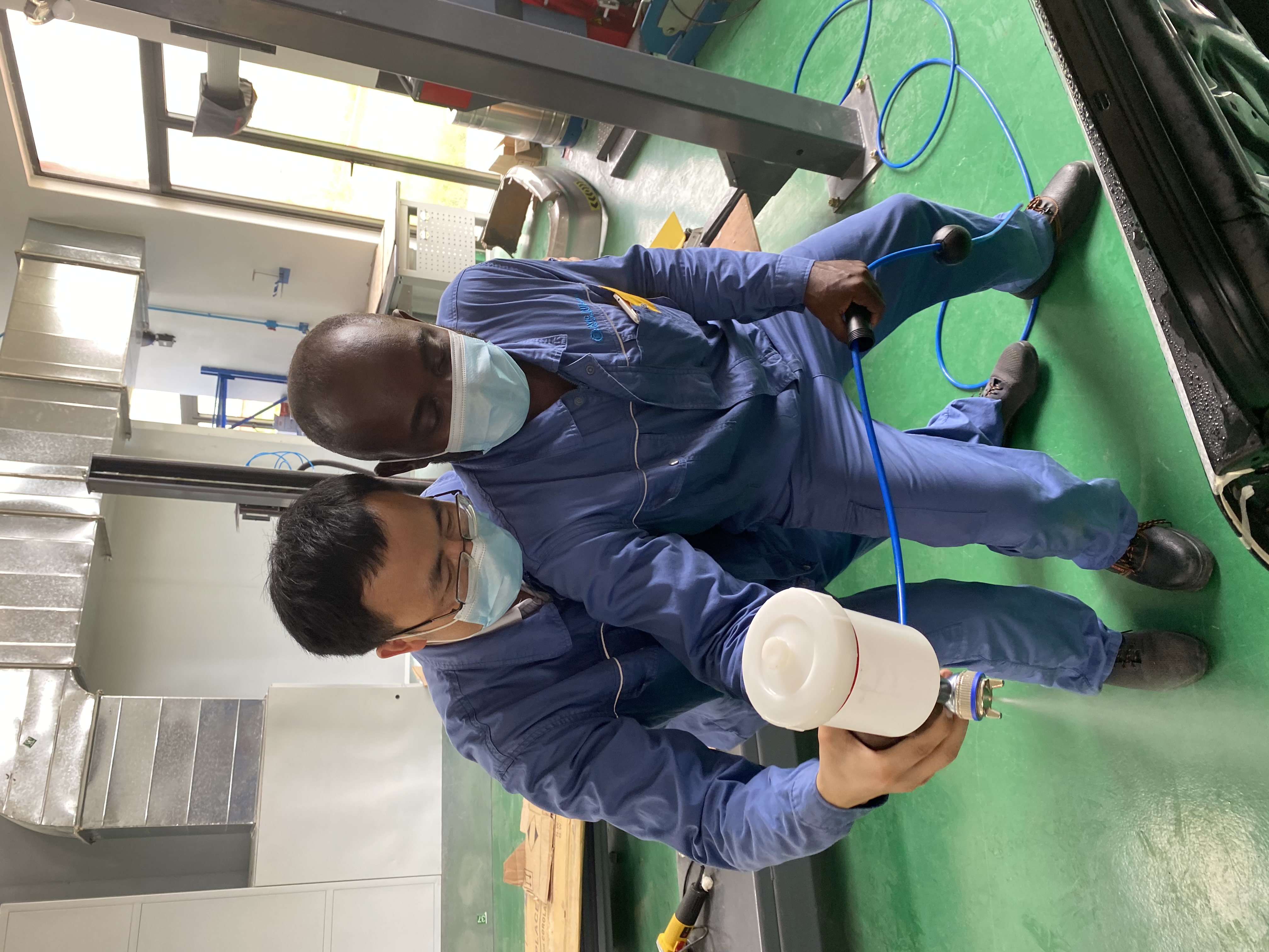 图2 手把手教非洲学员练习喷漆
