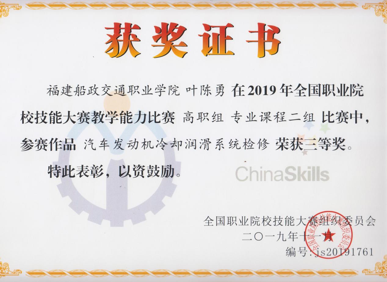 (三)2018、2019年11月被全国职业院校技能大赛组织委员会评为全国职业院校技能大赛教学能力比赛二等奖、三等奖