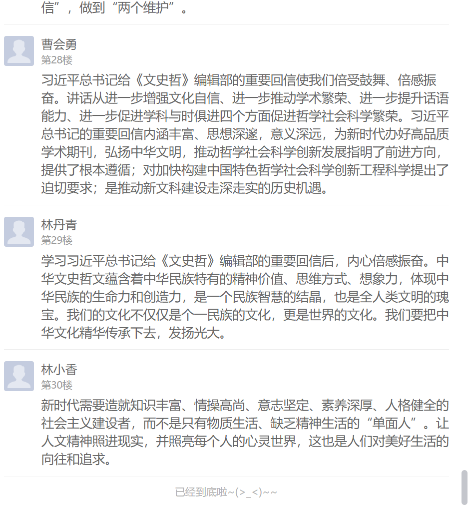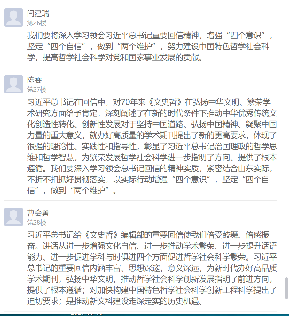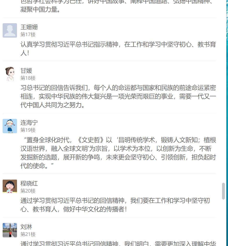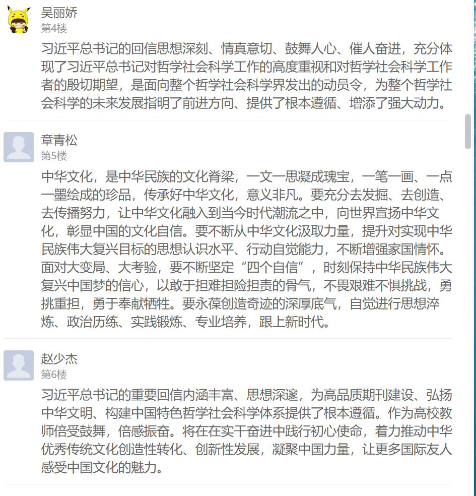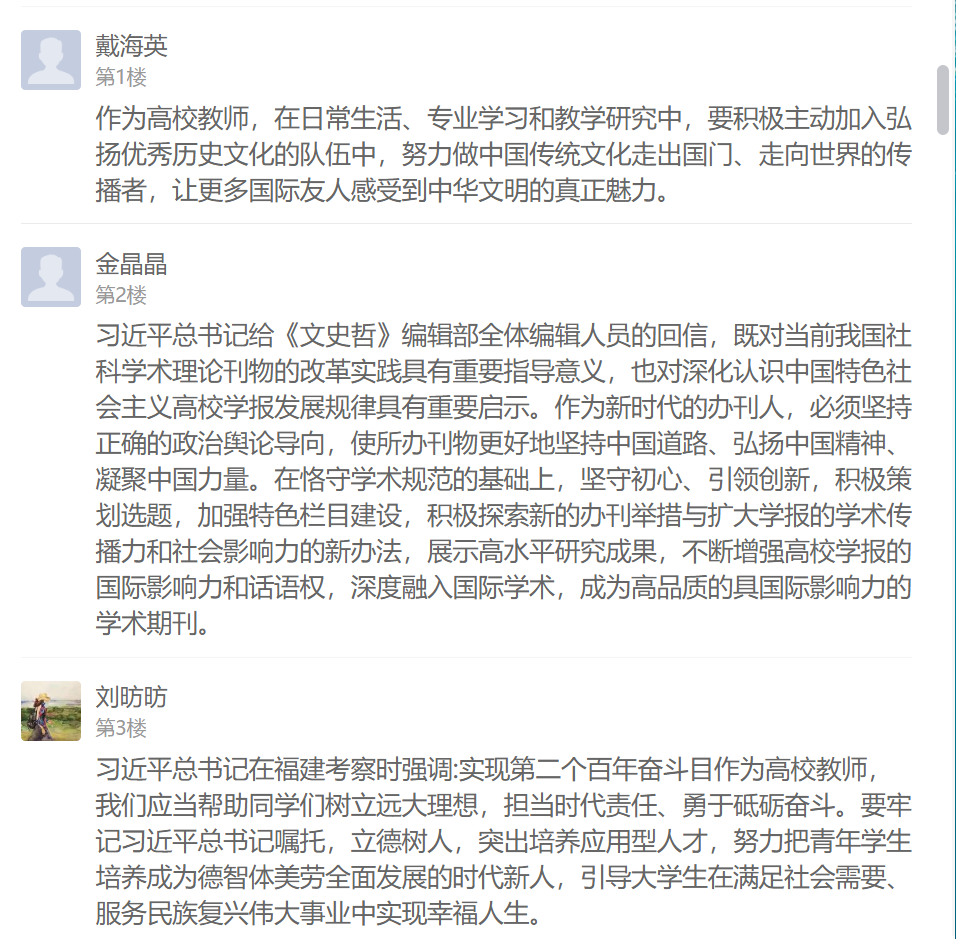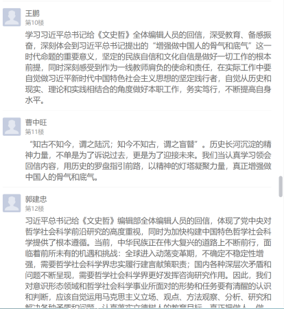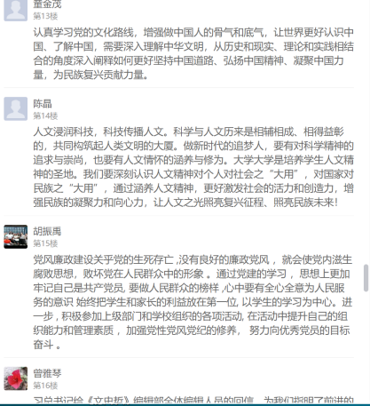 习近平总书记的回信在支部党员中引起强烈反响,不仅在学习现场热烈交流学习感想,还在线上学习通总支讨论区纷纷留言发表心得体会。