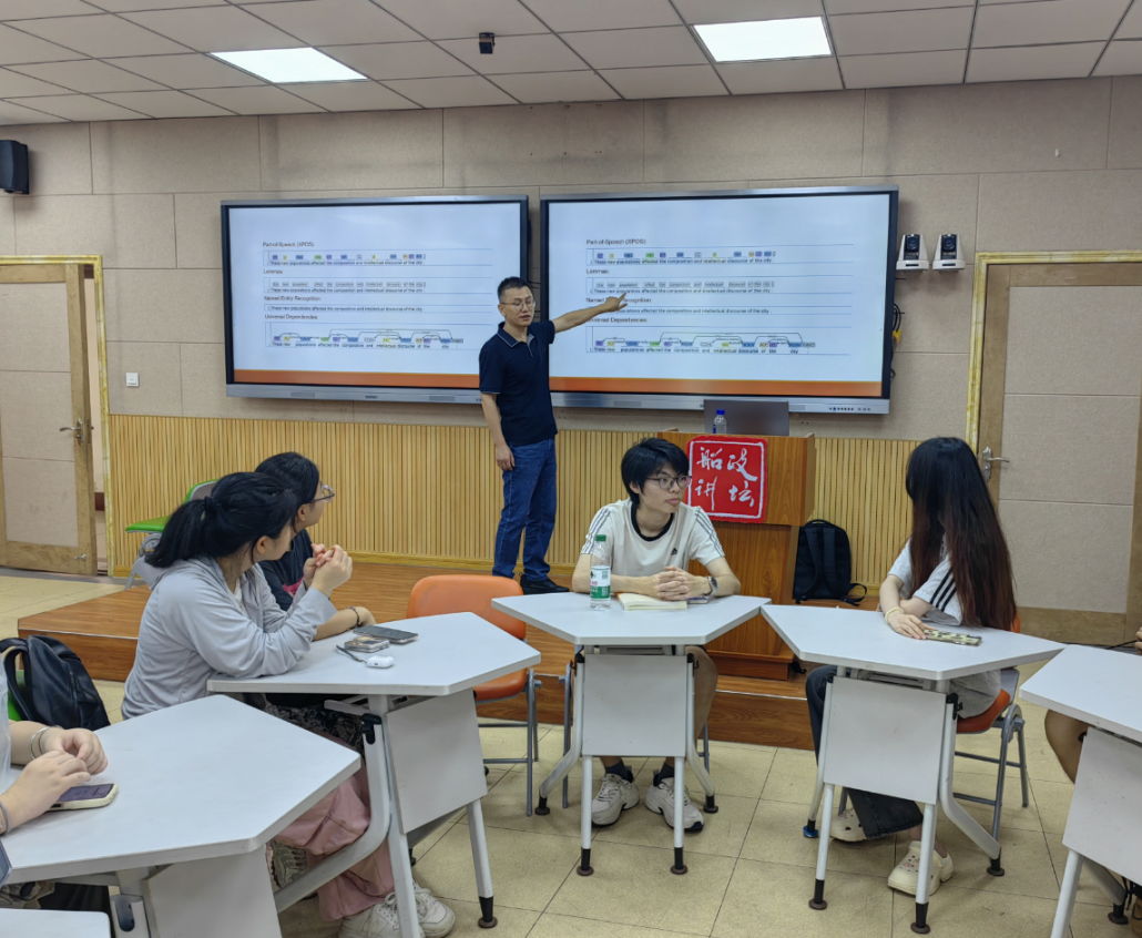 邓老师首先介绍了语料库的基本概念,包括语料库的定义、类型和特点,让师生们对语料库有了全面的认识。他认为,语料库作为语言研究的重要工具,能够为语言研究提供真实、可靠的语言数据,助力深入探索语言规律。同时,他通过展示多个语料库的实际案例,生动呈现了如何运用语料库进行数据分析,挖掘语言现象背后的深层规律,使抽象的理论变得直观易懂。