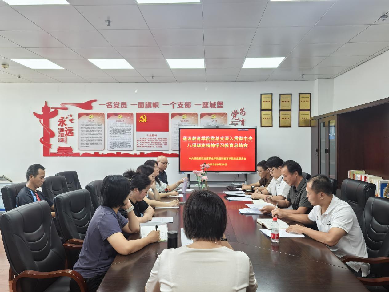 2025年9月24日,星空彩票通识教育学院党总支在福道园鉴知楼1007会议室召开深入贯彻中央八项规定精神学习教育总结会。会议由党总支书记陈火城主持,党总支理论学习中心组(扩大)成员及教师代表参加会议。