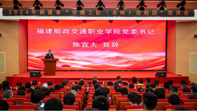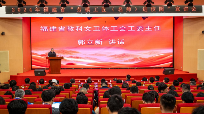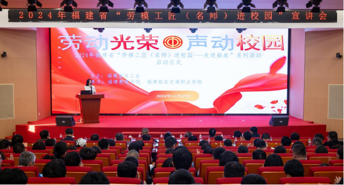 11月27日下午,主题为“劳动光荣·声动校园”----2024 年福建省“劳模工匠(名师)进校园”系列活动---走进星空彩票的活动在我院隆重举行。本次活动由福建省总工会主办,福建教育学院和我院共同承办。省教科文卫体工会工委主任郭立新、省教科文卫体工会工委二级调研员左修坤、福建教育学院宣传部部长、工会常务副主席范光基,学院党委书记陈宜大,党委委员、纪委书记张辉,党委委员、副院长陈艳红出席了本次活动,近300名师生代表参加活动。