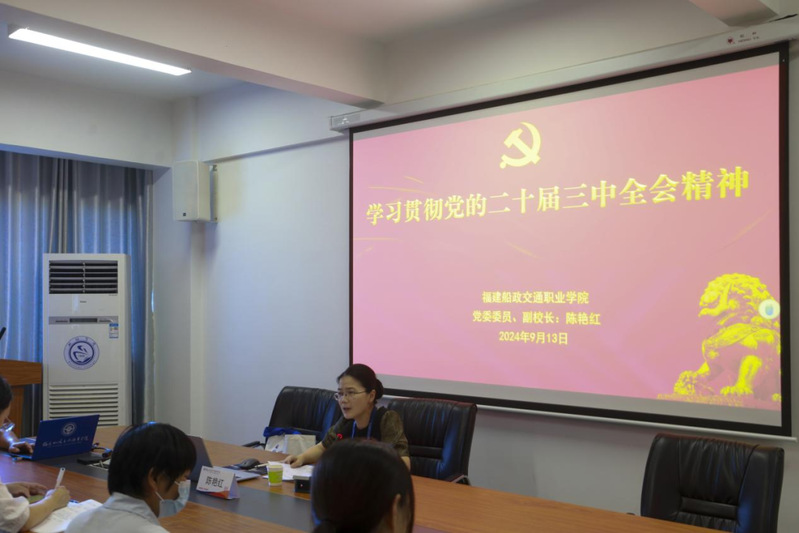 为深入学习贯彻党的二十届三中全会精神,推动全会精神入脑入心、落地落实,近日,学院党委委员、副院长陈艳红在航海学院校友楼307教室开展党的二十届三中全会精神专题宣讲,航海学院领导班子、 第一党支部、第五党支部以及学生代表参加了宣讲会。
