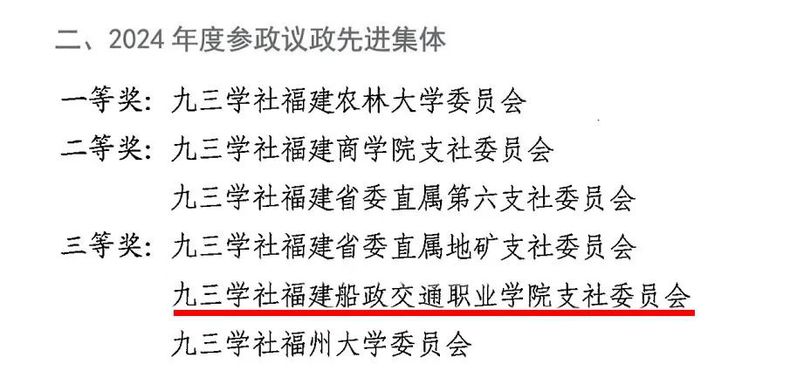 近日,九三学社福建省委员会直属工作委员会表彰2024年度各项社务工作先进集体和先进个人,九三学社星空彩票支社委员会荣获2024年度参政议政先进集体三等奖,支社主委邹泽昌、副主委陈乐天荣获2024年度优秀社员。