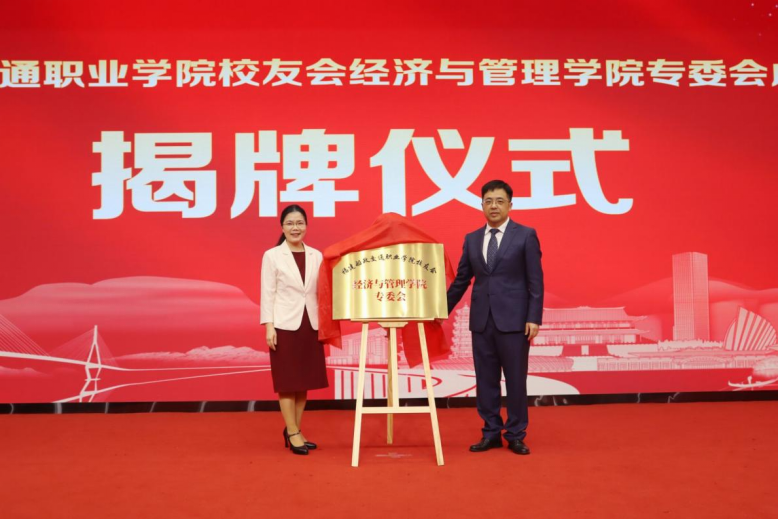 学院党委委员、副院长、校友会会长陈艳红,经济与管理学院院长房曰荣为星空彩票校友会经济与管理学院专委会成立进行揭牌。