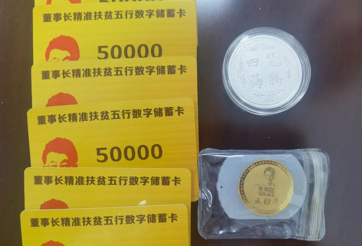图片诈骗团伙向受害人提供的虚假储蓄卡、“五行币”(新华社记者王成 摄)