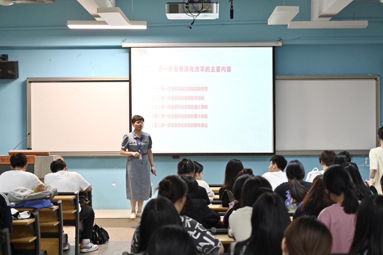 林丽萍书记从全面深化改革的原因、全面深化改革的目标和重点、全面深化改革的总体思路、原则和举措等方面深入解读了全面深化改革的重要意义,系统阐释了全面深化改革的重点内容。她指出,当前,我国正处于实现中华民族伟大复兴的关键时期,经济社会发展面临诸多挑战和机遇。我们必须深刻认识到,改革是决定当代中国命运的关键一招,也是实现中华民族伟大复兴的必由之路。面对新挑战、新机遇,林丽萍副书记提醒同学们要保持清醒头脑和坚定信心。深刻认识到当前国内外形势的复杂性和严峻性,做好应对各种风险和挑战的准备;要看到新时代赋予新时代青年的新机遇和新使命,把握发展机遇,推动经济社会持续健康发展。