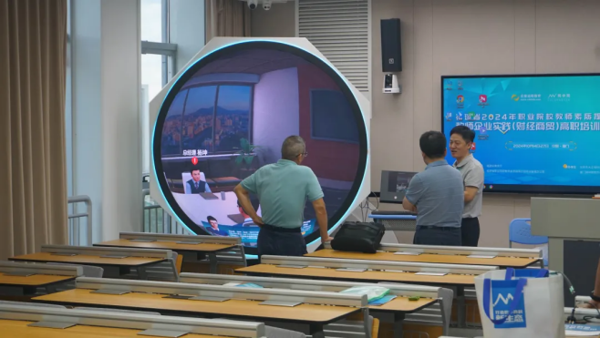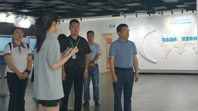 在危显军总监的陪同下,房曰荣院长一行人参观了厦门网中网软件有限公司,深入了解公司的发展历程、文化特色及产品研发成就。通过智慧教室体验了教学场所的交互式、智能化和便捷性,并在高清录课室中,分别从场地布景、拍摄设备、录制流程等方面,进一步了解了高质量课程建设的专业技术,同时感受了电商直播现场的紧密协作和高效运转。