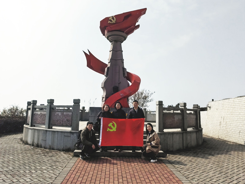追寻烽火岁月,感受茶山壮美后,驻足于丰碑下,张辉书记带领支部全体党员面对党旗,高举右拳,重温了入党誓词,再一次庄严地作出承诺,不忘初心、牢记使命。