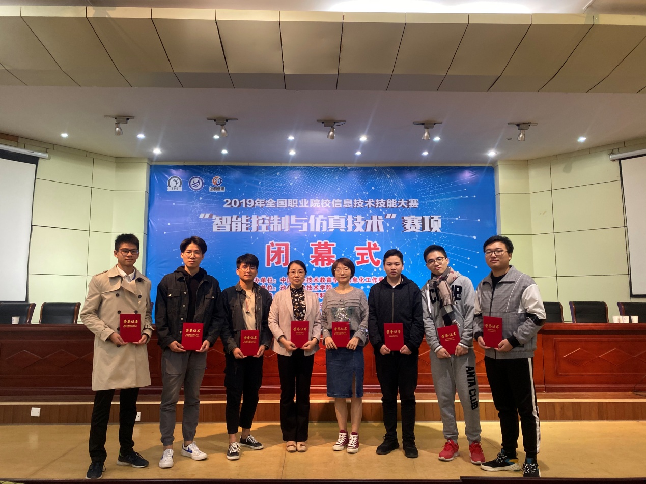 10月27日,2019年全国职业院校信息技术技能大赛——“智能控制与仿真技术”赛项的比赛在安徽池州落下帷幕,我系派出的“星空彩票一队”(学生:蔡俊静、李智武、江明翰)获得一等奖,指导教师蓝敏俐、程艳被评为“优秀指导教师”;另一代表队“星空彩票二队”(学生:黄学泓、吴政熹、雷炳坤)获得二等奖。
