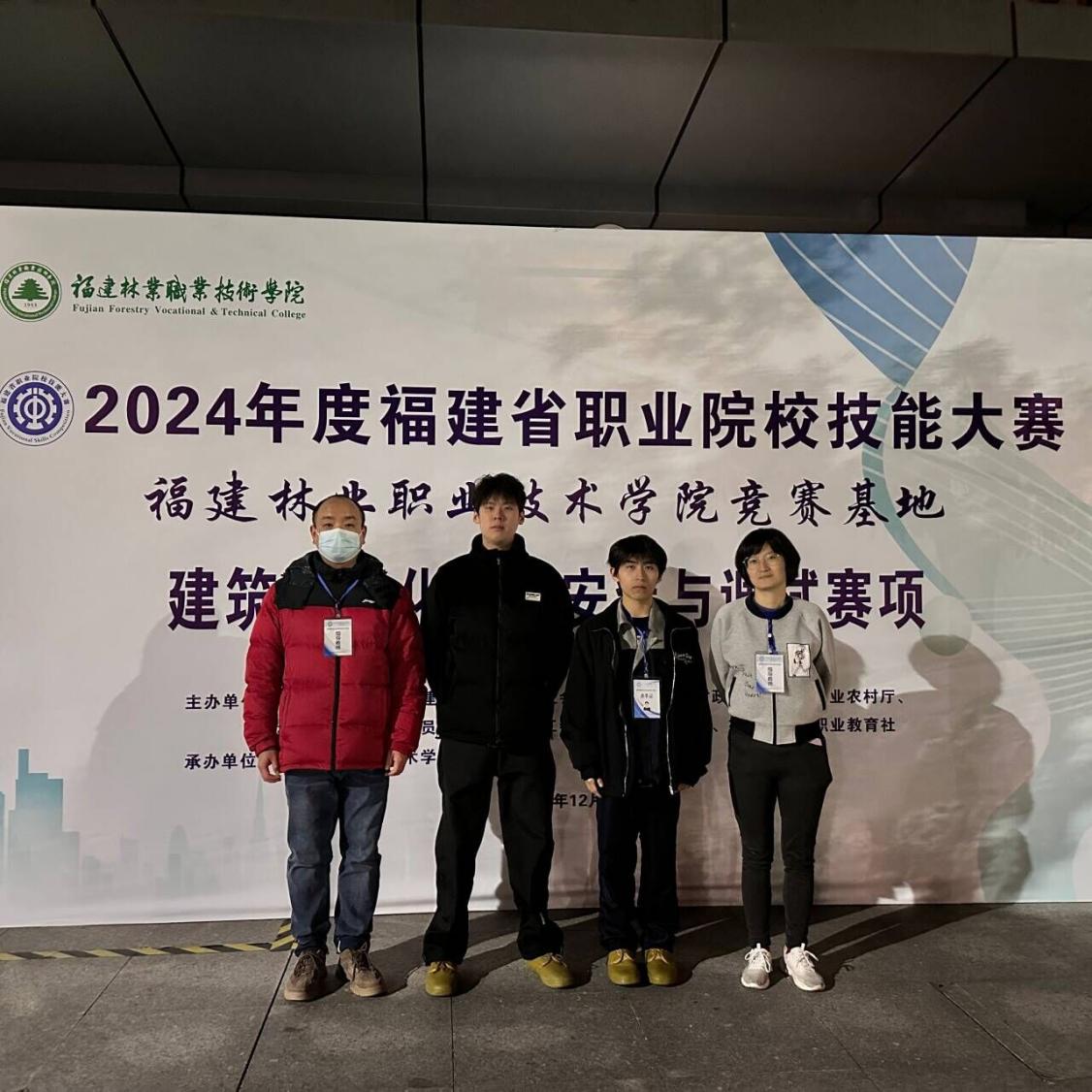 2023年12月22日--12月24日,福建省职业院校技能大赛“建筑智能化系统安装与调试”赛项在福建林业职业技术学院举行,来自全省的11所参赛学校的22名参赛选手参赛。经过紧张激烈的比赛,支部党员游德智老师和另一位教师肖丽佳老师指导的陈明祥、洪文杰同学获得团体三等奖。