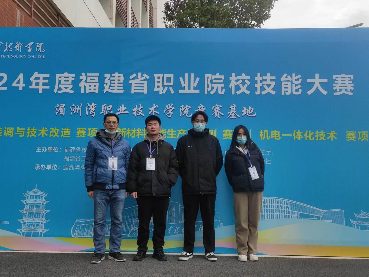 2023年12月23日-12月24日,福建省职业技能大赛“机电一体化”赛项在湄洲湾职业技术学院举办,来自全省的16支队伍参赛。支部党员廖应生老师和另一位指导老师曾舒老师指导的兰金朝、周文凯同学获得三等奖。
