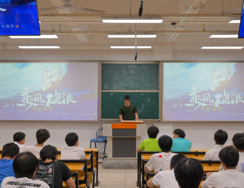 吴建炜学长不仅分享了自己在备考期间的心路历程和应对策略,更是鼓励同学们要保持乐观的心态,面对压力时要学会调整自己,保持最佳的学习状态吴建炜学长的分享,如同璀璨星辰照亮了考公路途的迷雾,不仅让学子们对考公的广阔天地有了更为深邃的认知,更在他们心中播撒下追梦的火花,点燃了逐梦前行的无限热情与动力。此次交流,宛若一座灯塔,指引着迷航者找到了属于自己的航道,让同学们在梦想的海洋中更加清晰地勾勒出了前行的方向,那份追求卓越的坚定信念,在每个人心中生根发芽,愈发茁壮,誓要在未来的征途中,乘风破浪,直挂云帆济沧海。