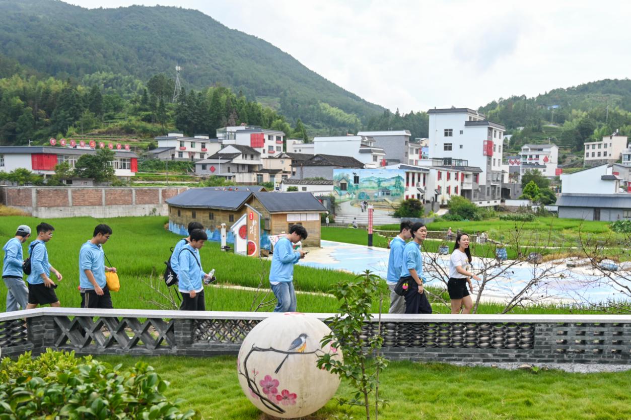 目光转向靴岭尾村层峦叠翠的梯田间,倡导团成员的脚步与剪纸红纸的镂空纹路交织成独特风景。作为中国剪纸艺术重要发源地,这个被绿色茶园环绕的村落,将千年非遗技艺与生态景观深度融合,构建起文创+生态的绿色发展范式。