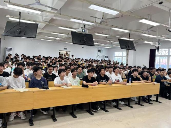 2025年9月17日,工业机器人技术专业教研室组织2025级249名新生于北区26号楼602教室举办专业介绍会,由教研室主任高华主持,教研室全体教师出席,并邀请校企合作企业宁德思客琦智能装备有限公司代表和大三学生代表参加。介绍会旨在帮助新生全面了解专业内涵、树立学习目标、科学规划学业与职业发展,共分为专业介绍、企业专家讲座和世赛金奖学生分享三个环节。