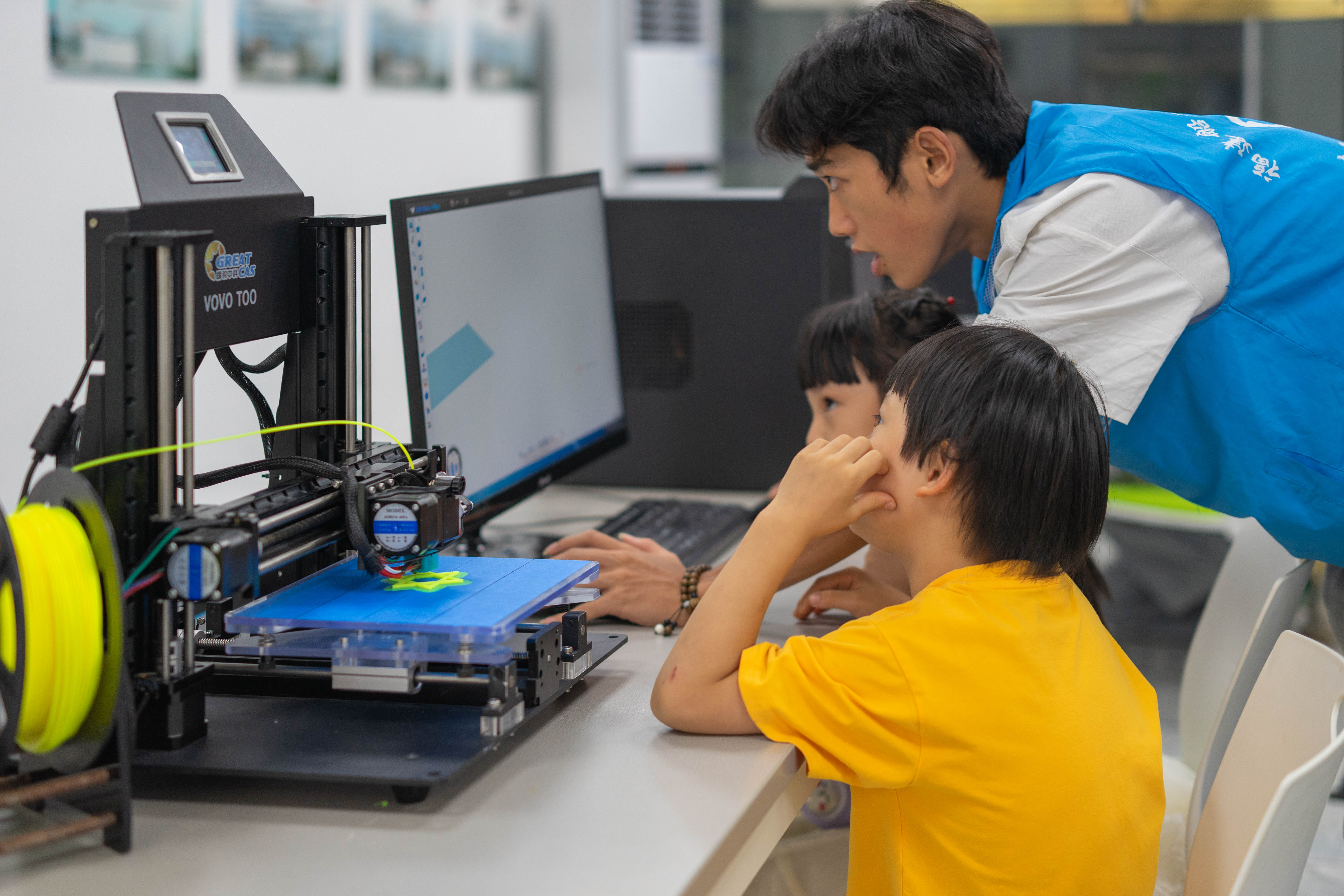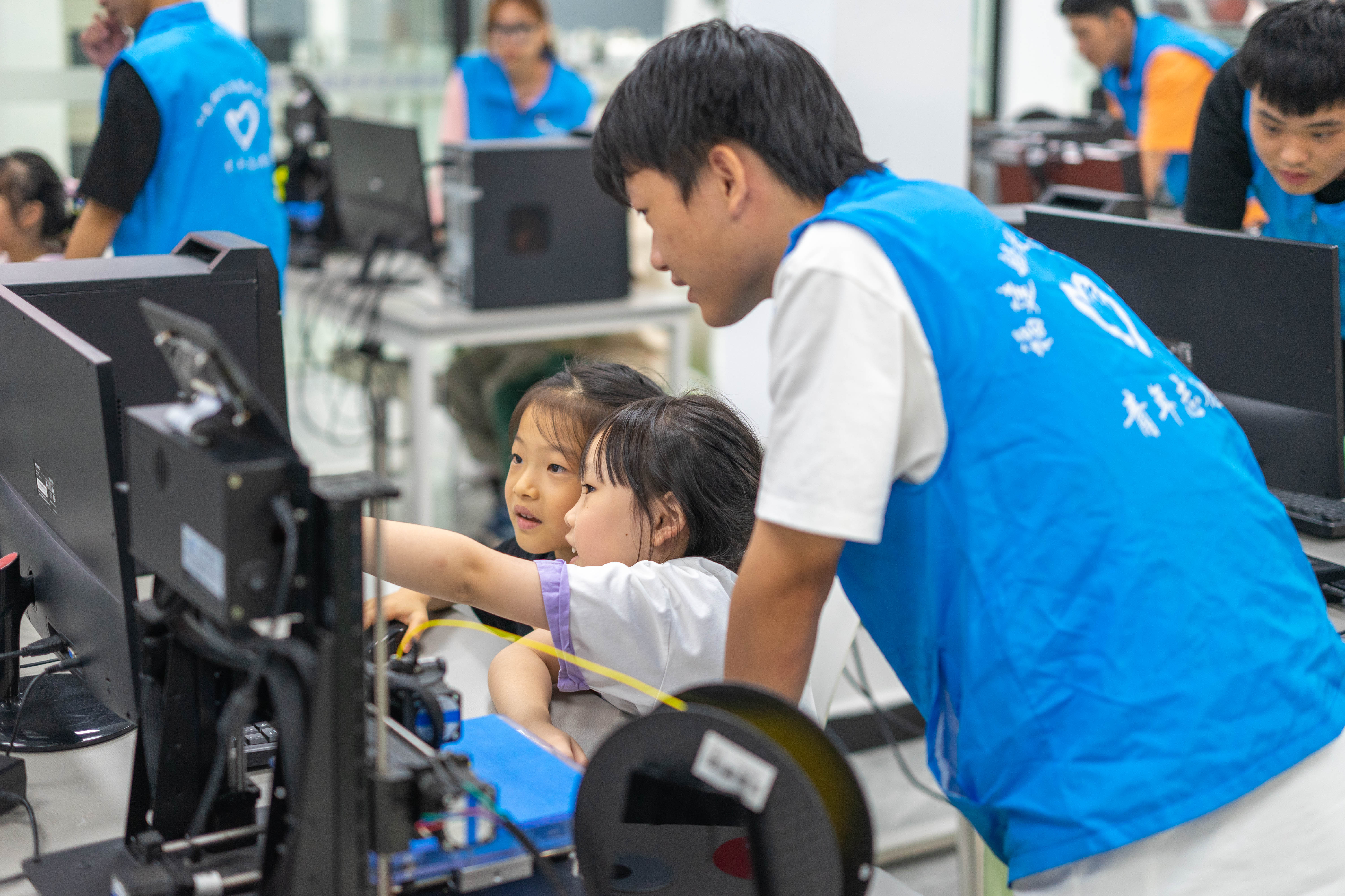 大学生志愿者积极参与此次科普活动,利用所学知识协助孩子们使用3D设计软件,用更贴近孩子们的语言,让他们直观地体会到技术对生活带来的变化。孩子们在体验科学乐趣的同时,也让科学的种子在心中生根发芽。