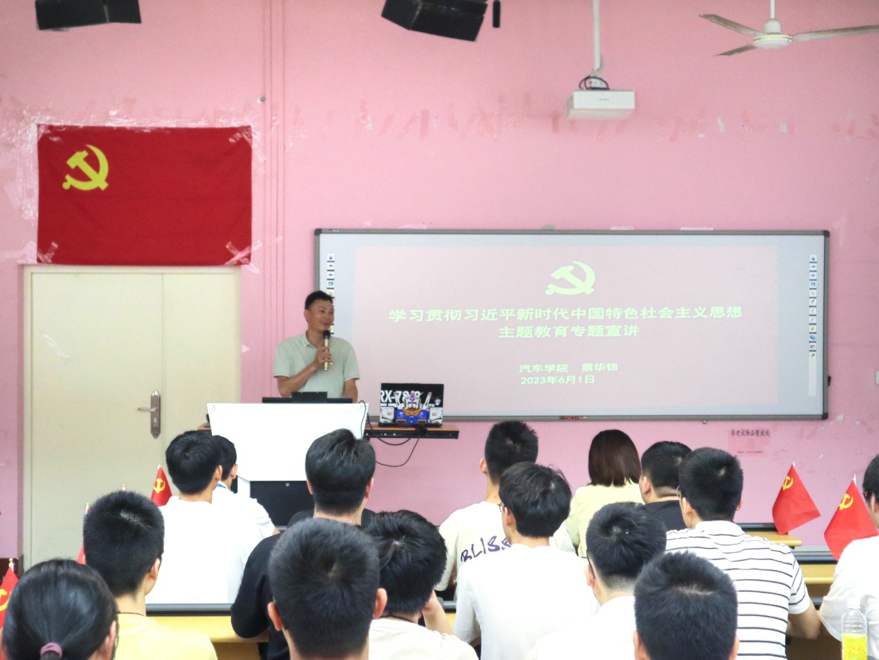 为了深入学习贯彻习近平新时代中国特色社会主义思想,进一步推动开展学习贯彻习近平新时代中国特色社会主义思想主题教育在学院走深做实, 2023年6月1日,汽车学院党总支蔡华锦书记在自强楼1-3教室开展学习贯彻习近平新时代中国特色社会主义思想主题教育宣讲会。辅导员、全体学生党员参加宣讲会。