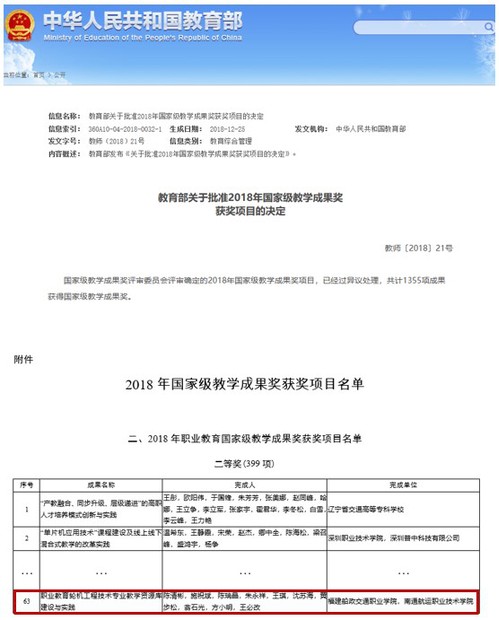 经国家级教学成果奖评审委员会评审确定,由轮机工程系陈清彬,施祝斌,陈瑞晶,朱永祥,王琪,沈苏海,黄步松,翁石光,方小明,王必改主持的《职业教育轮机工程技术专业教学资源库建设与实践》获得二等奖。