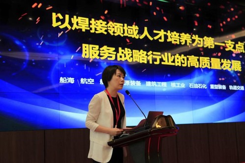 会上,中国船舶工业集团公司科普教育中心执行主任、中船舰客教育科技(北京)有限公司总经理鲁慧娟带领参会代表回顾了1+X证书发展历程,并表示在新时代的大环境中,职业教育将迎来发展机遇期,要以焊接领域人才培养为第一支点,服务战略行业的高质量发展,“舍九取一”构建持续的价值增量。