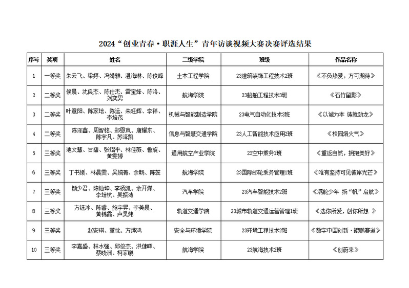 青年访谈大赛旨在强化就业与创业技能训练,提升学生的综合素质。大赛于4月拉开帷幕,同学们自由组队,充分挖掘身边的资源,以船政校友、身边的亲朋、创业青年、职场新秀、白领精英等为采访对象拍摄制作创业访谈视频。经过评审老师初选,共有24个优秀作品进入决赛。决赛中,评审老师严格按照评比标准,从选题内容、拍摄角度、剪辑技术等方面对进入决赛的24个作品进行了评审。