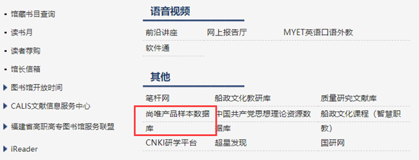3、图书馆首页 - > 其他 - > 尚唯产品样本数据库,找到数据库。