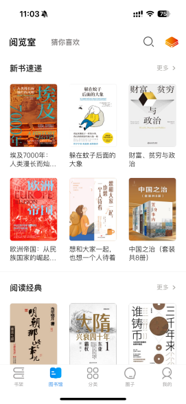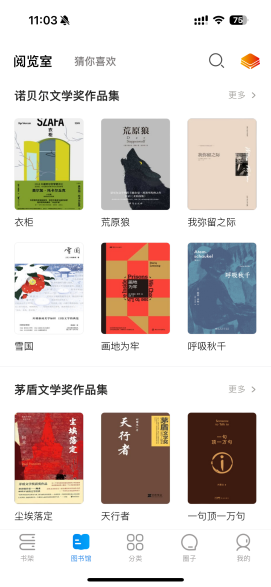主题书籍推荐:图书馆页面设置有新书上架、阅读经典、大奖书单等多个主题荐书栏目。
