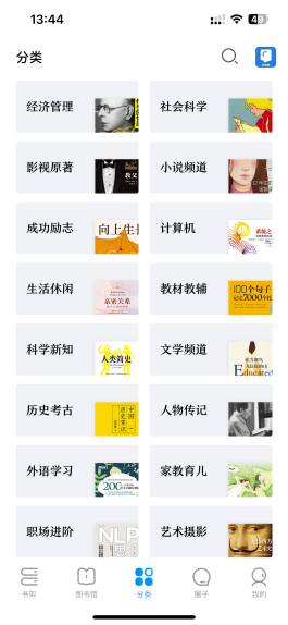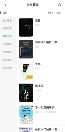 书籍分类: 京东读书专业版分类十分详细,共有22个一级分类,170个二级分类,每个分类再根据热门阅读及最新上架进行排序。找书十分方便。