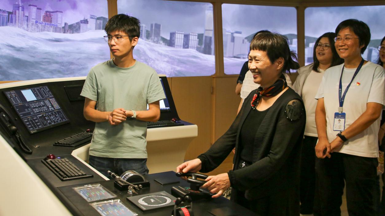党员同志们通过体验航海模拟器,参观心澜船社、数字化船厂及海洋航行器创研工坊,直观感受现代船舶制造与航海技术的创新成果。在模拟器的沉浸式操作中,大家深刻体会到航海工作者精益求精的工匠精神和勇于突破的劳动品格,党员们不仅感受到船舶制造的精密工艺,更领悟到“劳动创造价值”的深刻内涵。