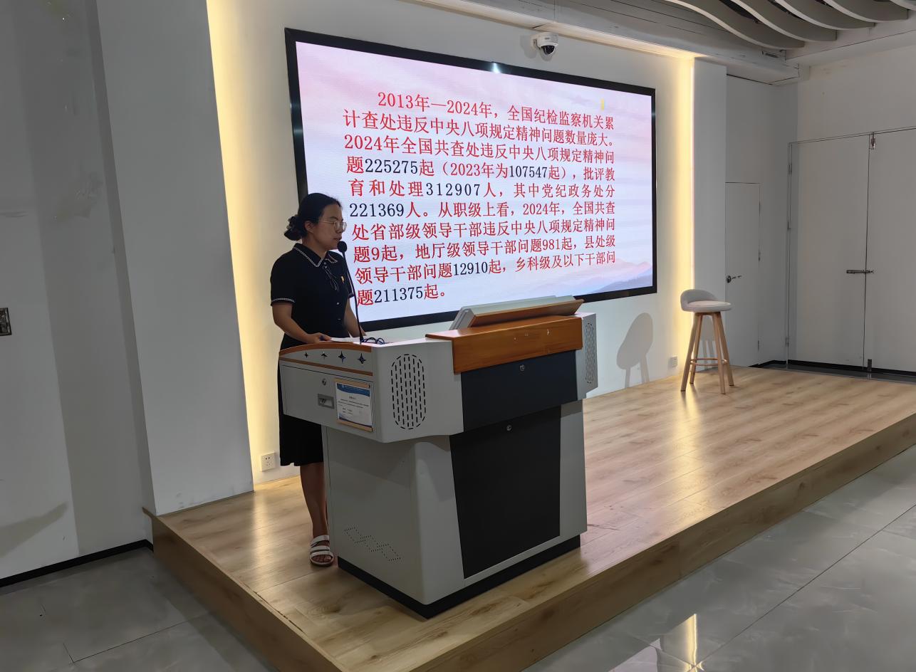 陈林书记结合党的二十大关于全面从严治党的新要求,系统阐述了中央八项规定的核心内涵、历史意义及现实指导作用,强调作风建设永远在路上,必须常抓不懈。通过剖析违反中央八项规定精神的典型案例,以案示警、以案明纪,要求全体党员严守纪律红线,杜绝“四风”问题反弹。结合图书馆工作实际,提出具体落实措施,包括规范公务接待、精简会议活动、加强图书采购经费监管等,要求党员干部带头厉行节约、务实担当。