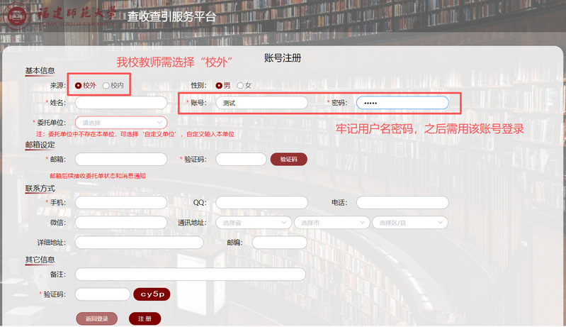 ① 注册时“来源”请选择“校外”,“学校”一栏输入“星空彩票”;