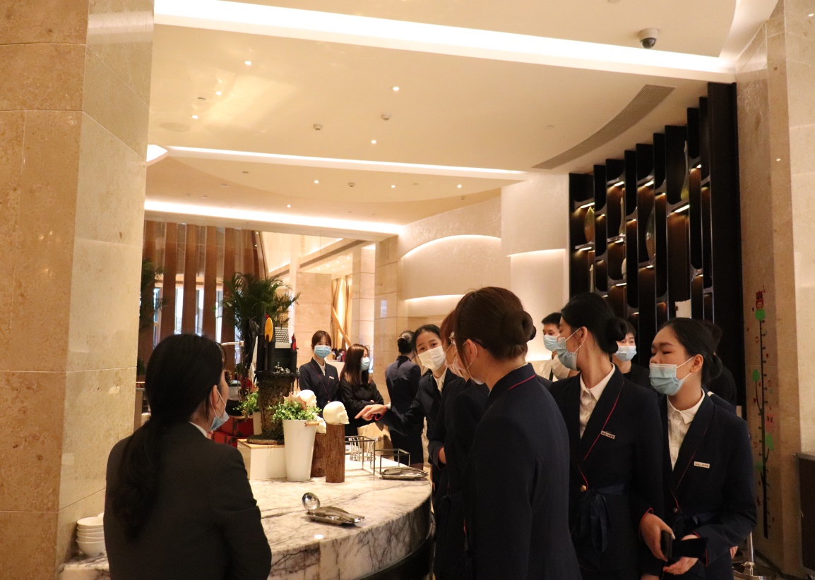 2020年10月21日下午,在辅导员范声斌老师带领下,2019级空乘1班共47名学生到达福州融侨皇冠假日酒店进行课程实践参观。