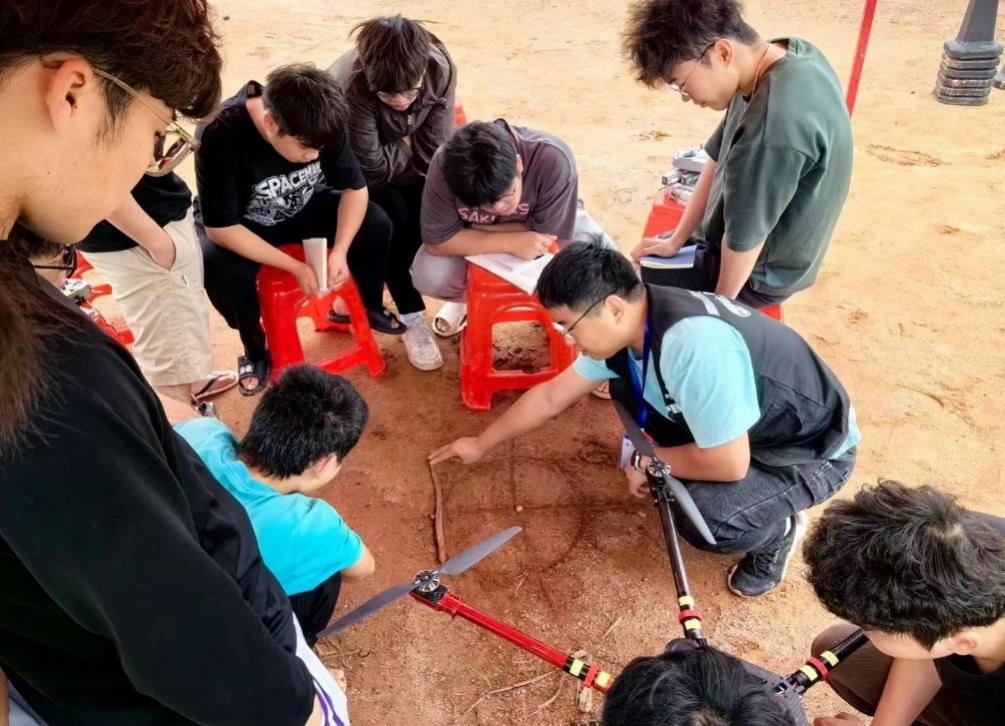 活动先由航模社成员表演穿越机,航模社成员的穿越机在天空中自由穿梭,来去自如,引得不少同学驻足观看、连连称赞,接下来由老师现场为大家指导讲解八字飞行的技巧,同学们在老师的指导下尝试飞行,感受着航模在他们手中穿行、加速、翻转,划出一道道优美的弧线。